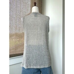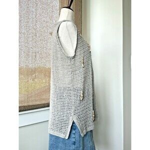 Vintage 90s I.B. Diffusion Fisherman Knit Vest S Beaded Crochet Coastal Linen Blend