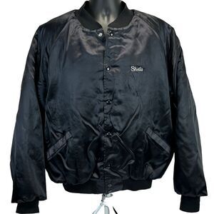 IBEW Local 383 Vintage 80s 90s Satin Bomber Jacket Glen Ellyn Illinois Labor Union International Brotherhood of Electrical Workers Electricians Black King Louie Made In USA
