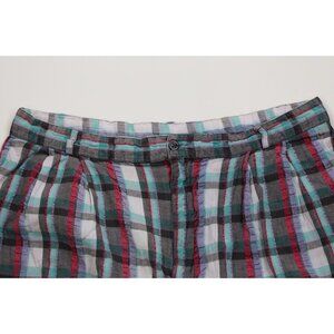 Vintage 90s IOU Mens Size 30 Faded Madras Plaid Seersucker Chino Shorts Cotton