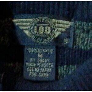 Soft acrylic knit with a relaxed fit, ribbed cuffs, and subtle IOU embroidered logo on chest.