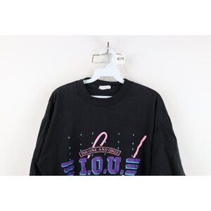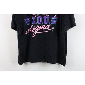 Vintage 90s IOU Skateboarding Mens Large Thrashed Spell Out Legend T-Shirt Black
