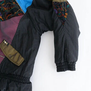 Vintage 90's ISPO Blue & Black Patchwork Funky Puffer Zip Up Winter Jacket S