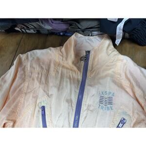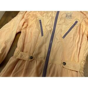 The Vintage 90s IXSPA Jamie Sadock Orange Lined Jumpsuit in women's size small is a stylish and unique one-piece outfit perfect for retro fashion enthusiasts. Made of nylon material, this jumpsuit features a vibrant orange color with a lined interior for added comfort. The vintage style adds a touch of nostalgia to your wardrobe, while the jumpsuit design offers a trendy and easy-to-wear silhouette. Perfect for adding a pop of color and retro flair to your outfit selection.pre owned good condition we ship fast measurements are in the pictures