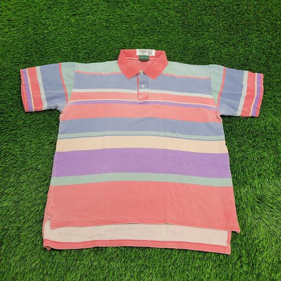 Vintage 90s IZOD Polo Shirt Large 23x28 Faded Stripes