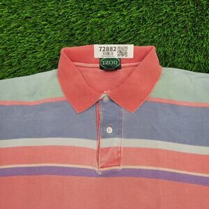 Step into the 90s with this vintage IZOD polo shirt featuring faded stripes. Large size, perfect for retro fashion lovers!