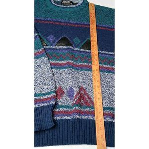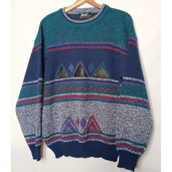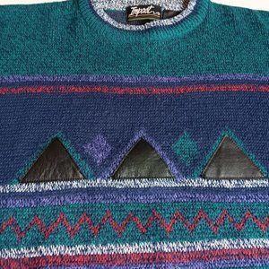 Vintage 90s Impact L Sweater Crew Neck Leather Patches Mountain Ski Retro READ
