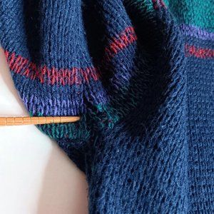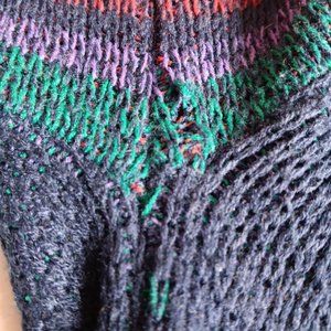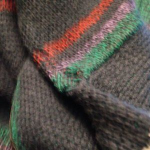 Has some loose knit under the right arm. Has some other thread pulls. Please see all pictures closely for flaws.