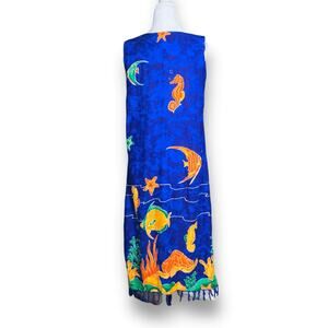 Vintage 90s In Gear Blue Ocean Fish Print Dress Tassel Hem Resort Boho Small