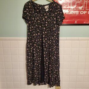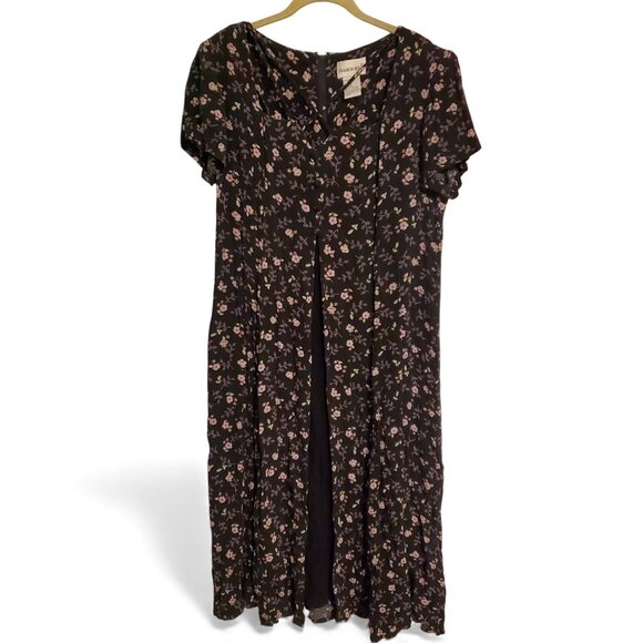 Vintage 90s Indie Grunge Whimsigoth Micro Floral Black Purple Maxi Dress