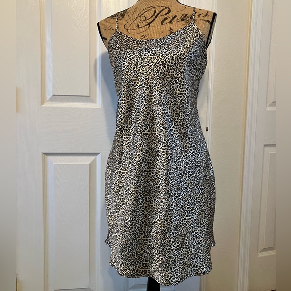 Vintage 90’s Inner Most brand leopard animal print satin side openings slip nightie in women’s size M—also fits L. Adjustable straps and very comfortable to wear! No stains or flaws, bought at Sear’s department store back then. Clean, Lightly worn great condition! From nonsmoking home. Fabric does not stretch but fits nicely!