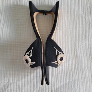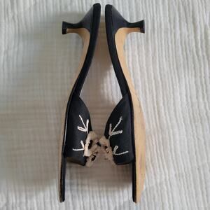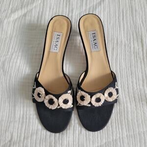 Vintage 90s Isaac Mizrahi Womens 8 Heel Sandals Low Kitten Heel Black Raffia