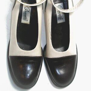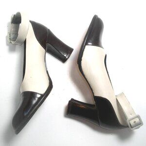 Vintage 90's Italian Black & Cream Chunky Cap-Toe Ankle Strap Pumps 9M 39M