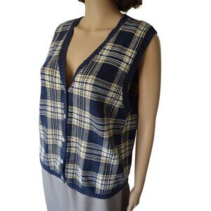 Vintage 90s Izod Club Paid Sweater Vest Women M Blue Yellow Golfcore Knit Preppy