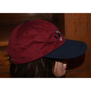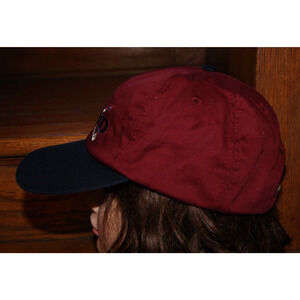 Vintage 90s Izod Maroon/Navy Golf Clubs Logo Cap Hat Leather Strapback