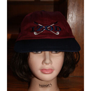 Vintage 90s Izod Maroon/Navy Golf Clubs Logo Cap Hat Leather Strapback Good used condition