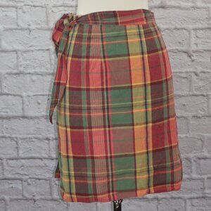 Vintage 90s J. Crew Cotton Plaid Wrap Skirt Small