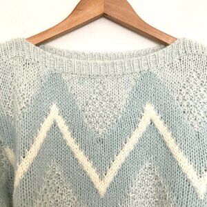 Vintage 90s JH COLLECTIBLES Alpaca Blend Chevron Pullover Sweater Pastel Blue