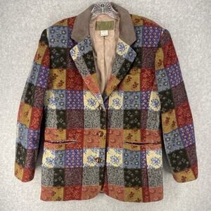 Vintage 90s J.L. Colebrook Wool Blend Patchwork Plaid Blazer Jacket Lined Sz M