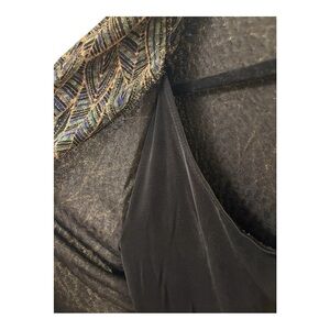 Color/Pattern: Black base with metallic jewel-toned leaf print