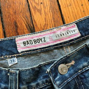 Tan Leather Spell Out Bad Boyz Script Leather Patch on Back Right Pocket.