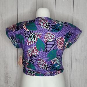 Vintage 90s Jaclyn Smith Boxy Fit Tropical Print Tie Front Blouse, size 10