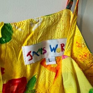 Vintage 90s Jam's World Floral Fish Mini Dress Size Large EUC Yellow