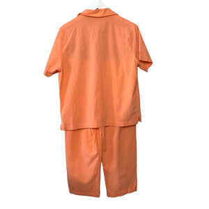 Vintage 90s Jane Ashley Matching Set Pants and Top Butterflies.100% cotton. drawstring waist high rise cropped fit pants with coordinating set with short sleeve button down top. Embroidered and beaded butterflies. Neon orange color.