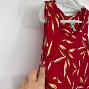 Red Vintage 1990s Jane Ashley Leaf Print Tie Back Sleeveless Dress