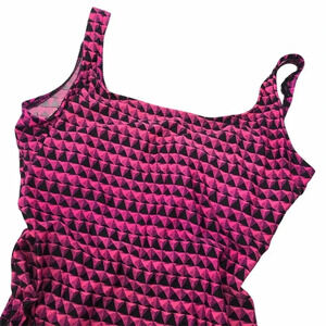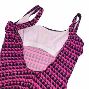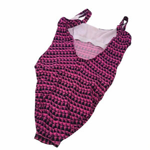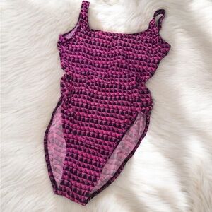 Vintage 90s Jantzen Magenta Black Geometric One Piece Swimsuit Made in USA