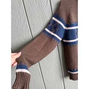 Vintage 90s Jean Michaud Nordic Knit Sweater – Brown/Blue – Women’s M