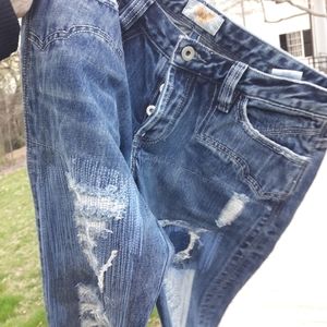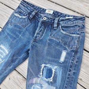Vintage 90s Jeans Womens Straight Leg Patch Frayed Edge Distressed
