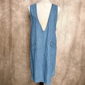 Vintage 90s Jennifer Morgan Denim Dress Sleeveless Deep V Neck Midi Shift School