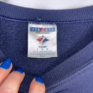 Good condition, Vintage 90s Jerzees Football Crew Neck Sweatshirt. This crewneck is not your average find—it's a rare gem that combines nostalgia with iconic style. Featuring a bold American flag football graphic, this sweatshirt stands out as a true piece of American sportswear history.With the classic Jerzees label and a design straight from the 90s, it's a must-have for anyone who appreciates vintage and rare sports apparel. Whether you're a collector or simply a fan of timeless, statement-making pieces, this crew neck adds an authentic, retro flair to any wardrobe.