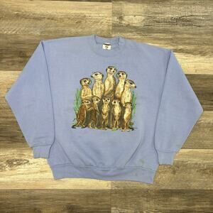 Vintage 90s Jerzees Meerkats Blue Brown Green Mens XL Pullover Sweatshirt USA