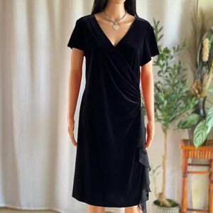 Vintage 90s Jessica Howard Black Velvet Faux Wrap Dress Made in Hong Kong Sz 14P