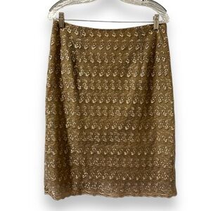Vintage 90s Jessica Howard Brown Gold Floral Embroidered Skirt Women’s Size 14