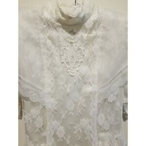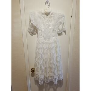 Vintage 90s Jessica McClintock Ivory Lace Floral Dress Girls Size 10 Mock Neck