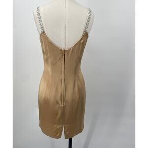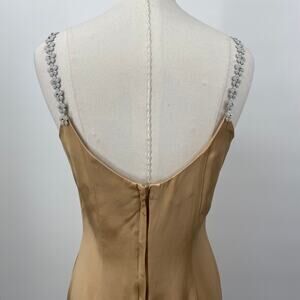 Vintage 90s Jessica McClintock Satin Mini Dress Flower Beaded Straps Champagne 6