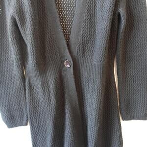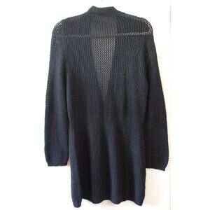 Vintage 90s Sander Cardigan Womens 38 Black Knit Open Front Button Wool Sweater Italy Slouchy Open Knit Weave