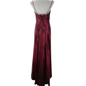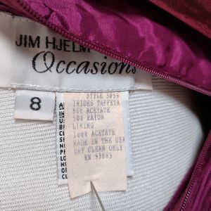 Vintage 90s Jim Hjelm Formal Dress Size 8 Red Taffeta Square Neck Maxi Watteau