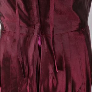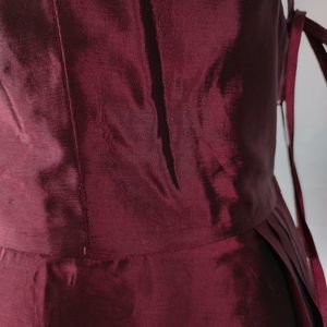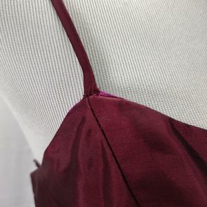 Vintage 90's. Soft iridescent taffeta fabric, a-line silhouette with spaghetti straps, back tie accent and watteau style train starting at the waist. Back zipper closure. Fully lined with side plastic boning. No rips, tears or stains. Straps have been altered, two areas with flaws to fabric, please see close up photos.