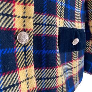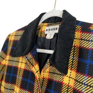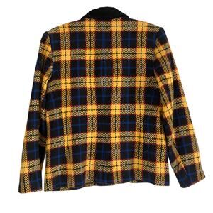 Vintage 90s Joan Leslie Yellow Black Tartan Wool Twill Velvet Blazer Size Medium