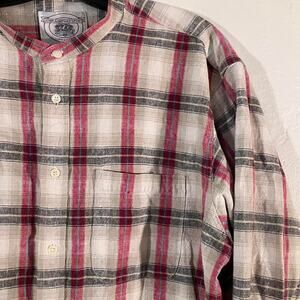 Vintage 90s John Ashford Sport Linen Blend Red White Plaid Button Up Shirt XL