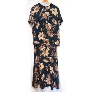 Vintage 90's Jones New York Silk Floral Black Brown Tan Two Piece Midi Skirt Set