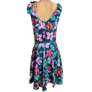 Vintage 90s Joni Blair Floral Skater Dress Size 11 Tropical Beachy Vacation Sun