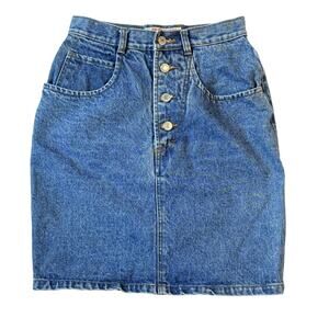 Vintage 90s Jordache High Waist Blue Denim Button Front Jean Skirt 7/8
