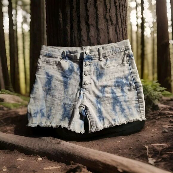 Vintage 90s Jordache Women's 28 Waist Tie Dye Denim Snap Shorts