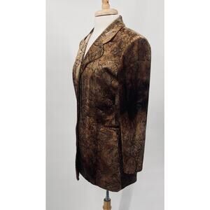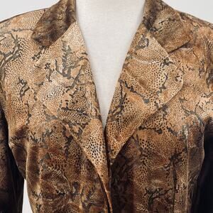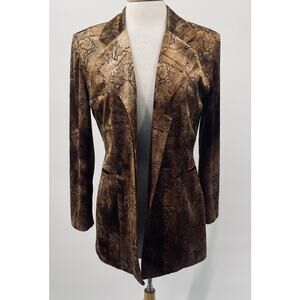 Vintage 90s Joseph Ribkoff Velvet Snakeskin Print Blazer Jacket Brown Gold