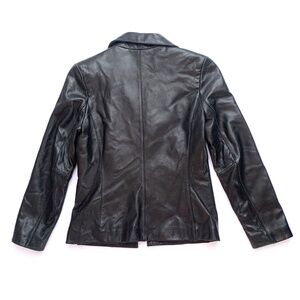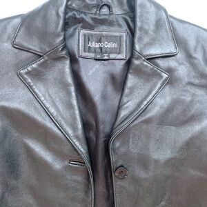 Vintage 90s Juliano Celini Soft Black Leather Button Up Fitted Jacket Blazer XS