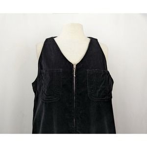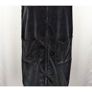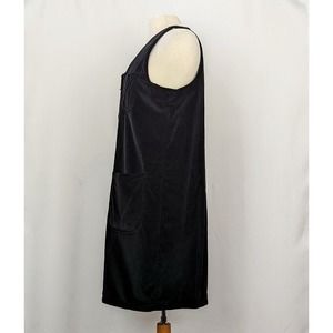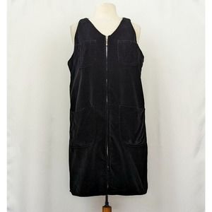 Vintage 90s Jumper Dress Black Velour Zip Front Pockets Misses Size M